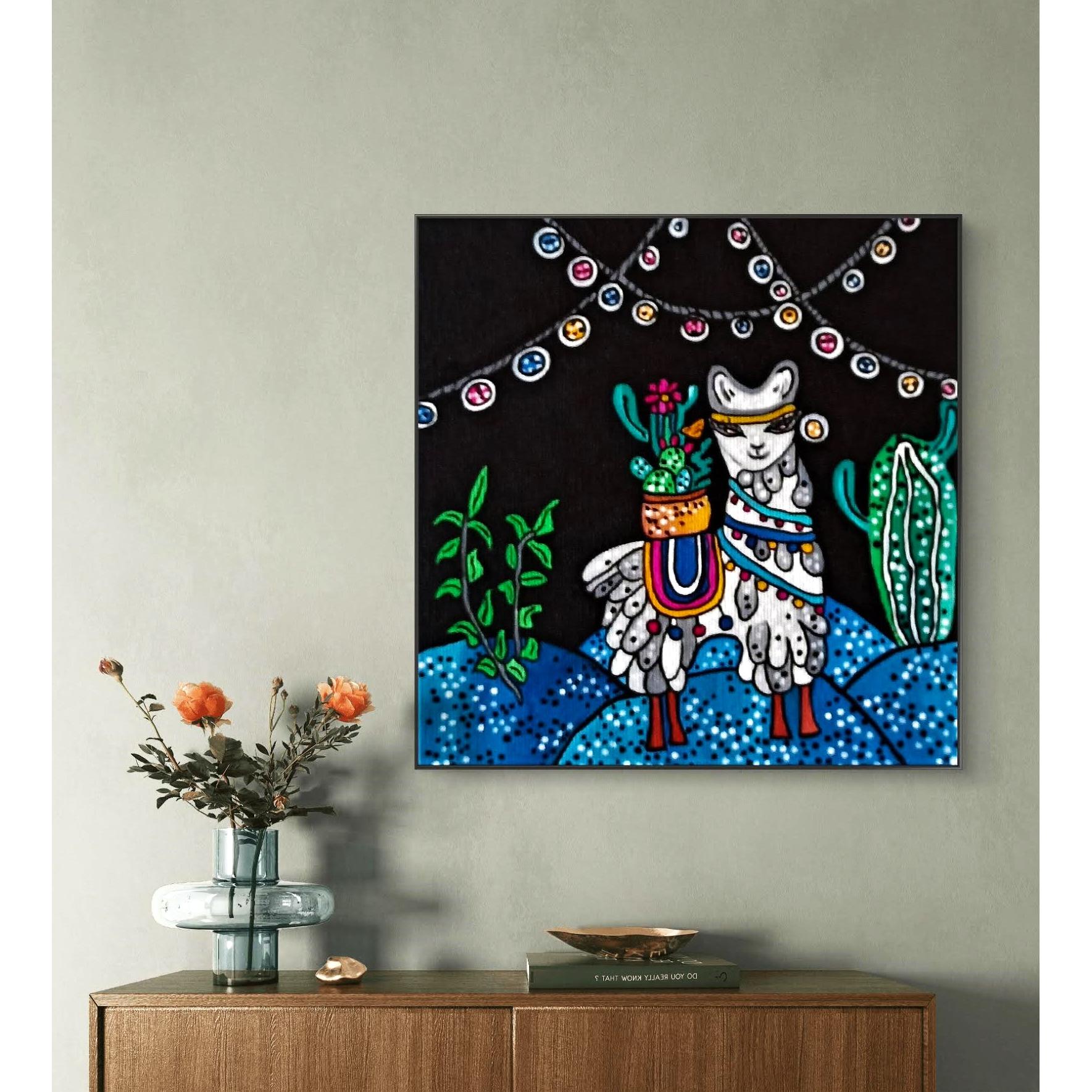 Opera di piccole dimensioni, piacevole e allegra oltre che appesa al muro avendo un telaio di spessore può essere appoggiata ad un mobile.