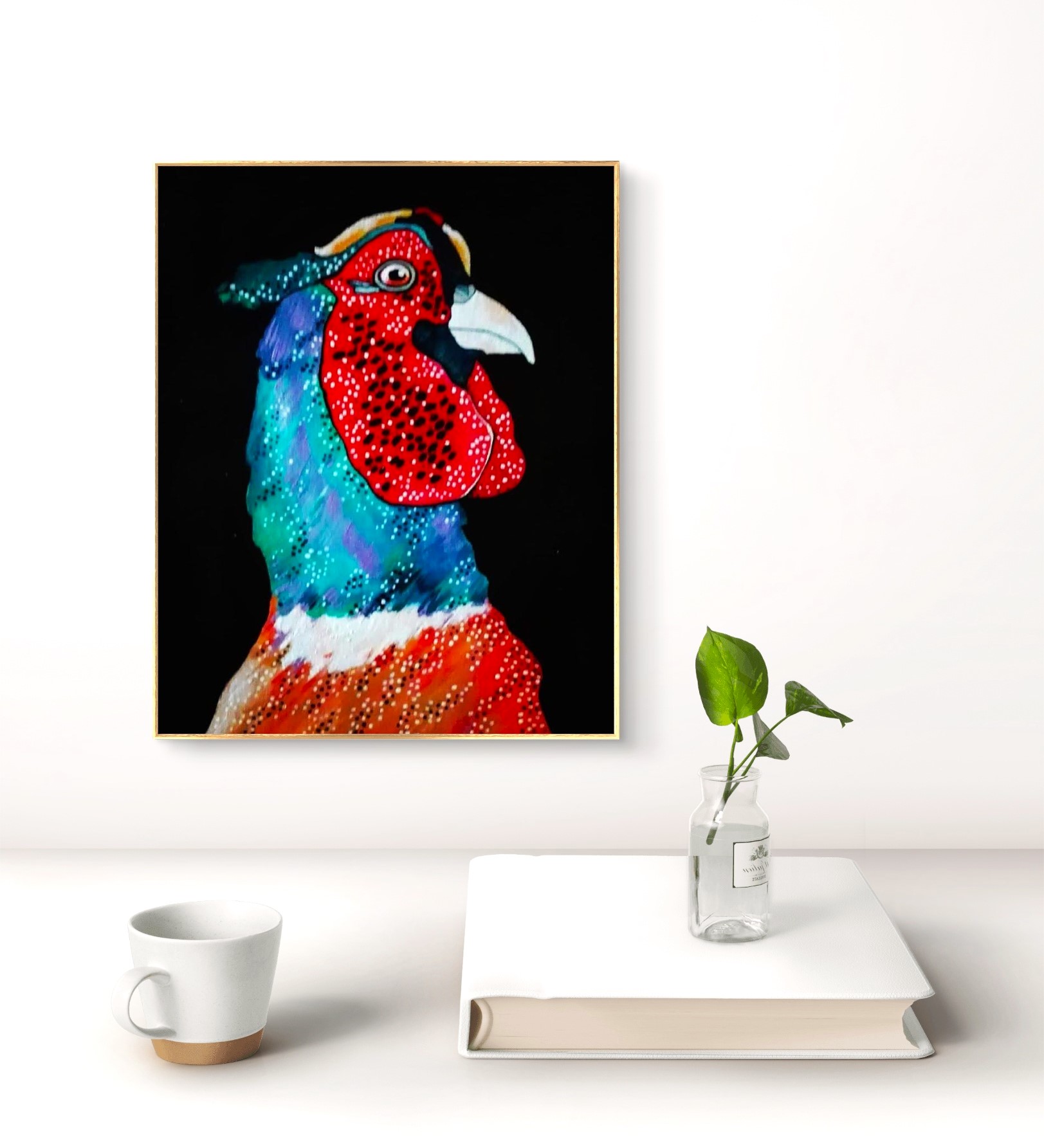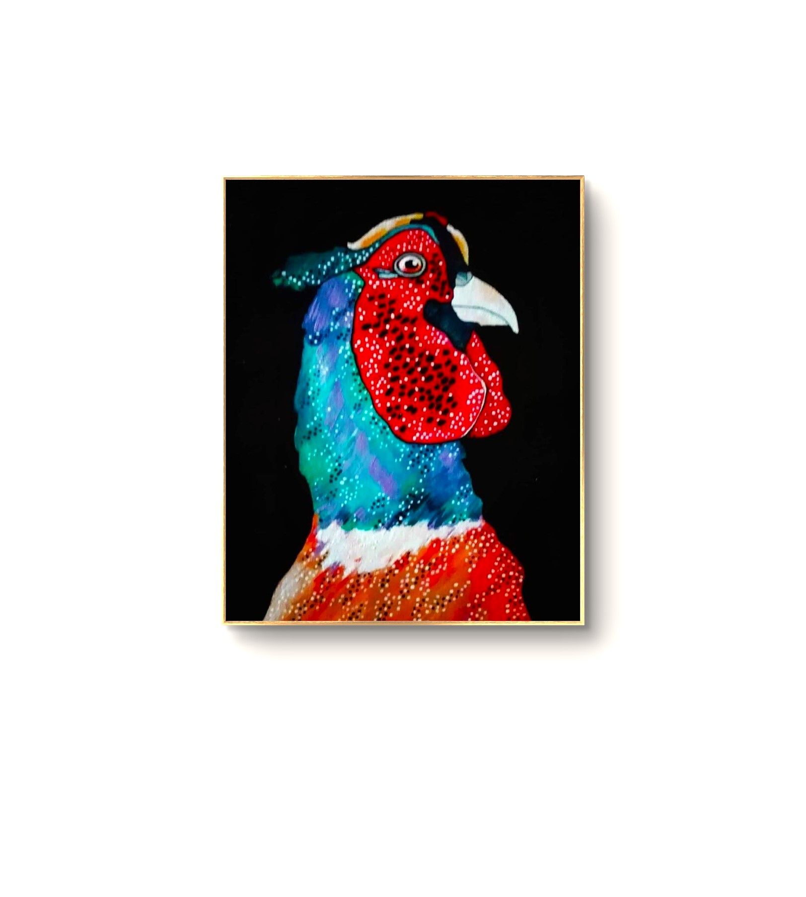 Quest' opera è stata realizzata in pieno lockdown, sul retro della tela vi è la scritta " Fagiano al tempo del coronavirus" . Il dipinto non è montato su telaio per dare la possibilità all' acquiente di farlo a suo gusto, e anche per facilitare la spedizione.