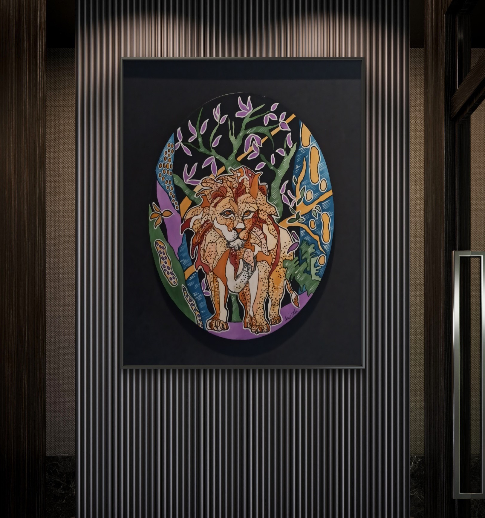E' un'opera che vuole esprimere un sentimento come la solitudine, il leone pur essendo un animale regale spesso associato a forza e coraggio conduce un' esistenza solitaria come lo sono spesso i grandi uomini